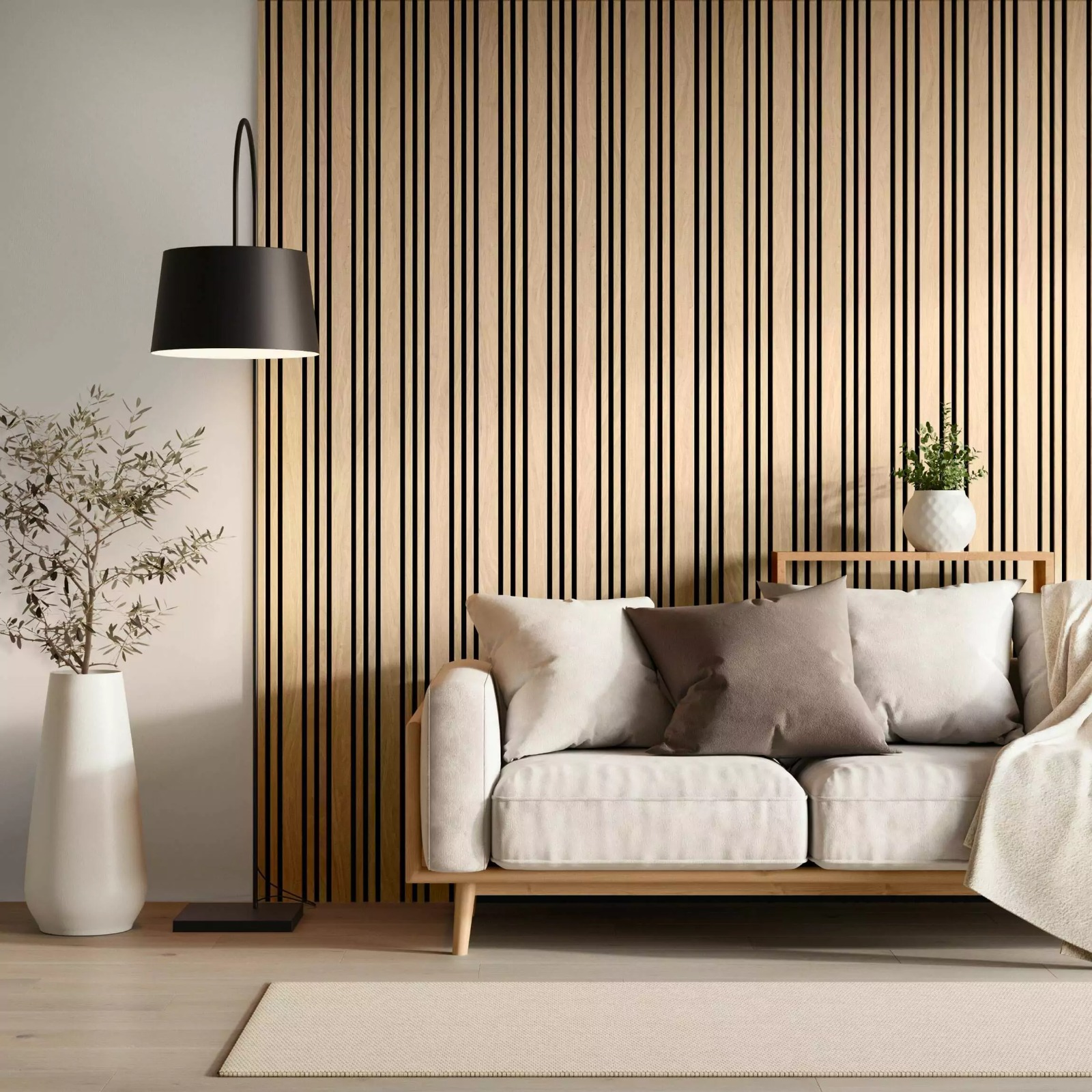 - Slatted Panels: Diffuse sound evenly while adding a contemporary look.